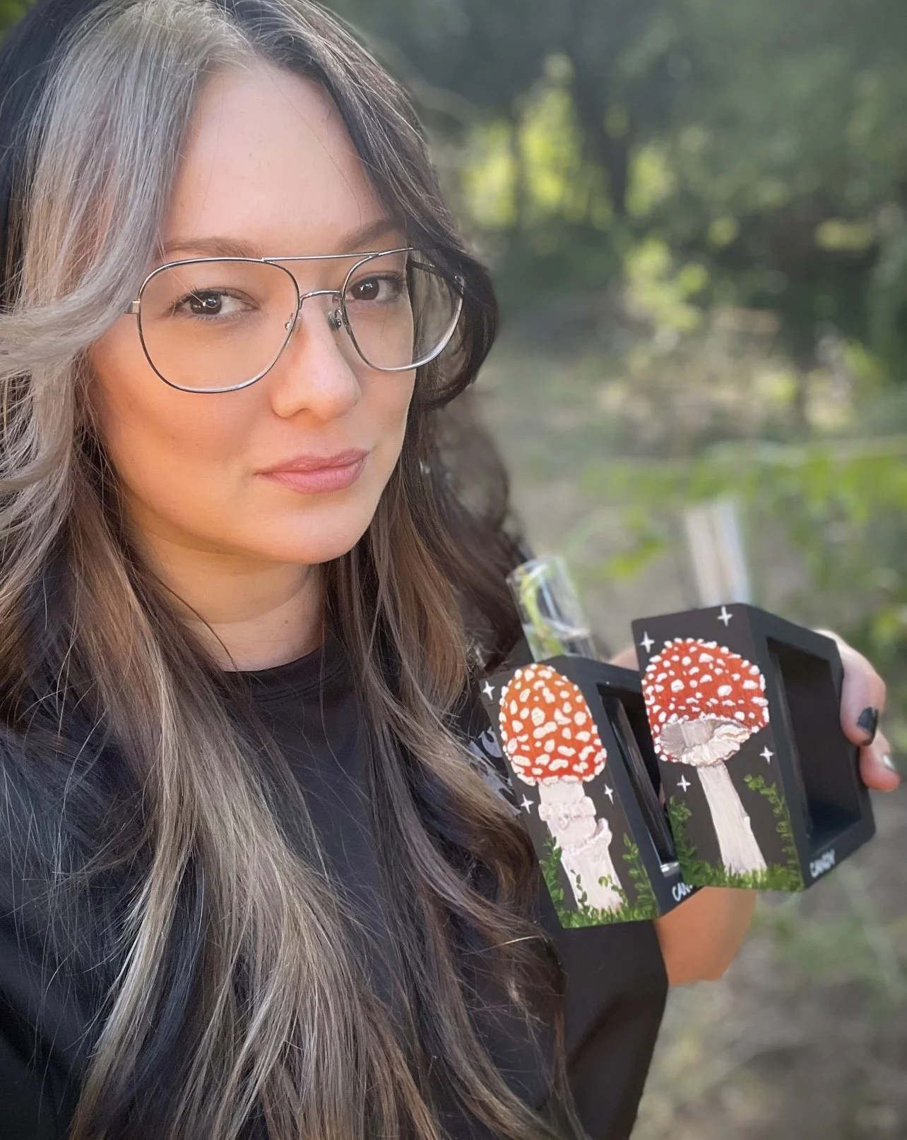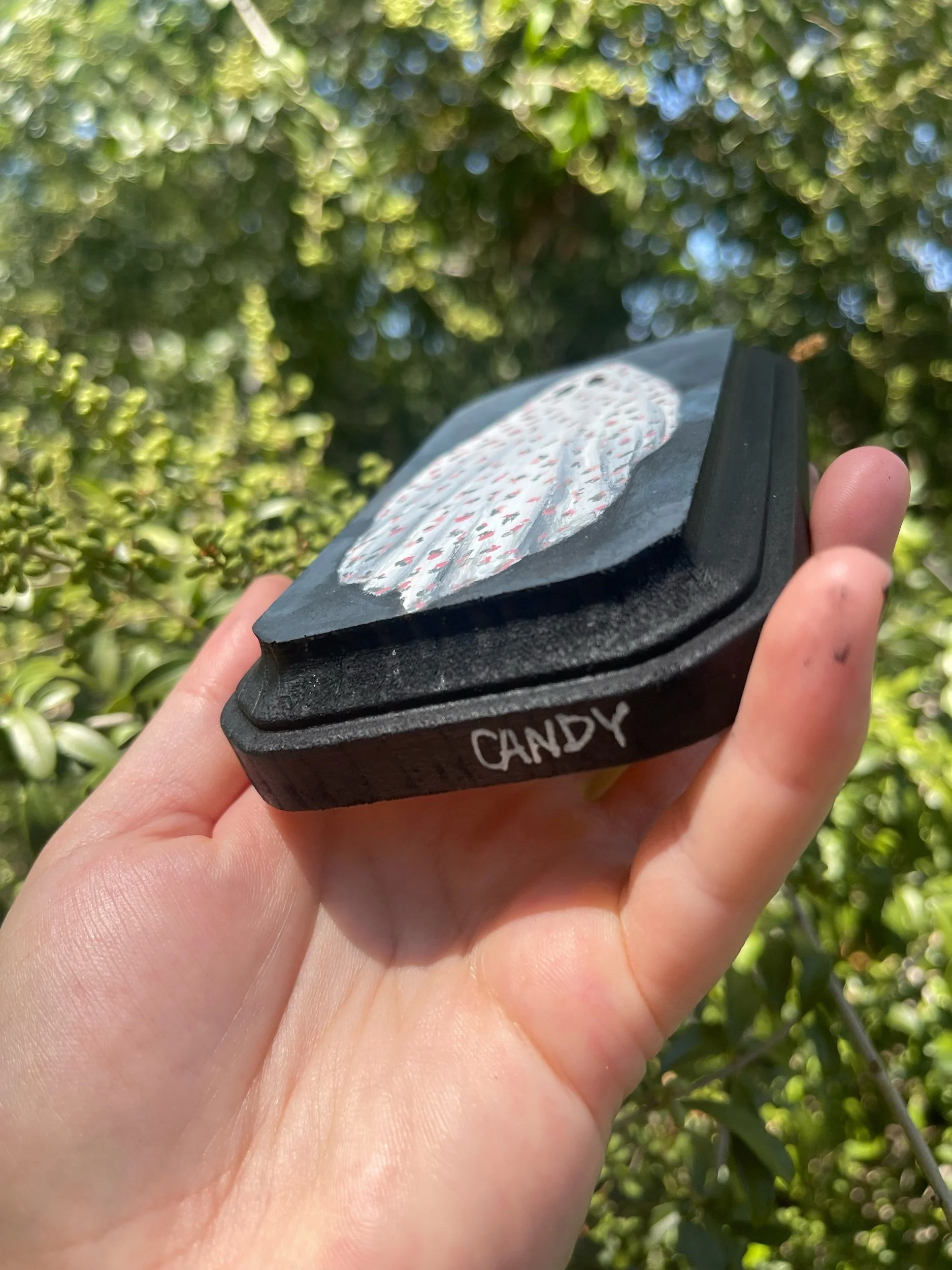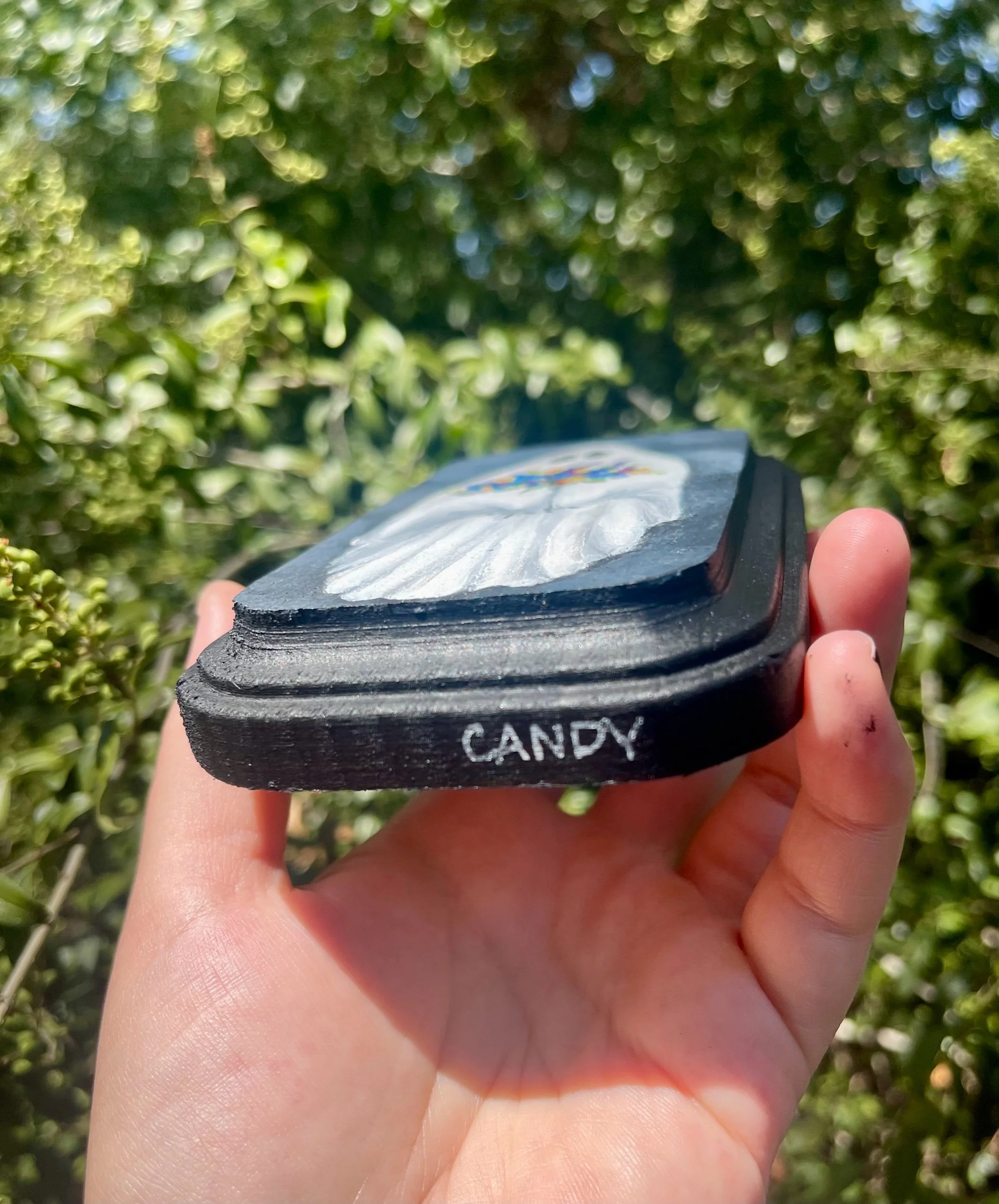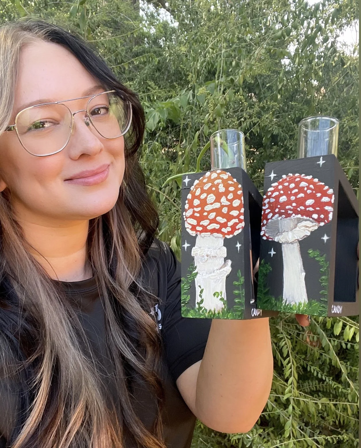 THANK YOU FOR BEING HERE! Here is you will find one of a kind art pieces handmade by self taught artist Candice McEnturff, a.k.a. “CANDY” (36). Everything is created in her home studio in Denton, Texas. Creating art has been her full time career since 2019, and is her lifelong dream in action. Putting beautiful and unique creations out into the world, into your homes and lives, and connecting with groovy souls is her passion! Everything is meticulously created with love and intention, with quality and archival materials meant to last.